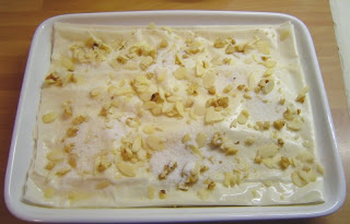Repite la operación con las 7 láminas y ve colocando una encima de otra. Haz unos cortes longitudinales sobre la superficie (como haciendo rombos) y hornea a 180ºC, durante 30 minutos.